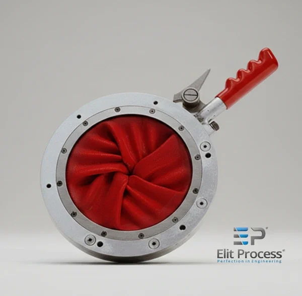Es ist für die Steuerung des Durchflusses von Schüttgütern, Pulvern und Granulaten konzipiert und funktioniert durch die Anpassung der flexiblen inneren Membran, um die Größe der Öffnung zu verändern. Das flexible Material im Körper biegt sich, wenn der Dreharm bewegt wird, und unterbricht so die Durchflussmenge vollständig. Durch Drehen des Griffes öffnet sich der Ventilkörper vollständig. Bei Big-Bag-Entleerungssystemen wird der Big-Bag-Auslassanschluss durch das Irisventil geführt, bevor dieser gelöst und der Auslassanschluss geöffnet wird. Während des Materialflusses kann durch die Irisblende der Big-Bag-Auslassanschluss im gewünschten Maße verschlossen und so die Materialdurchflussmenge angepasst werden. Auf Wunsch kann der Materialfluss komplett unterbrochen werden.